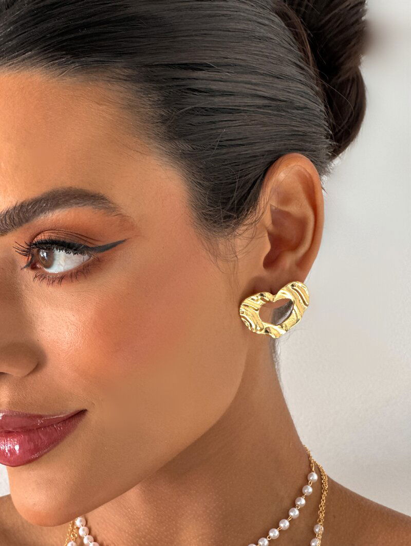 3. Brinco Folheado a Ouro 18k Coração Vazado