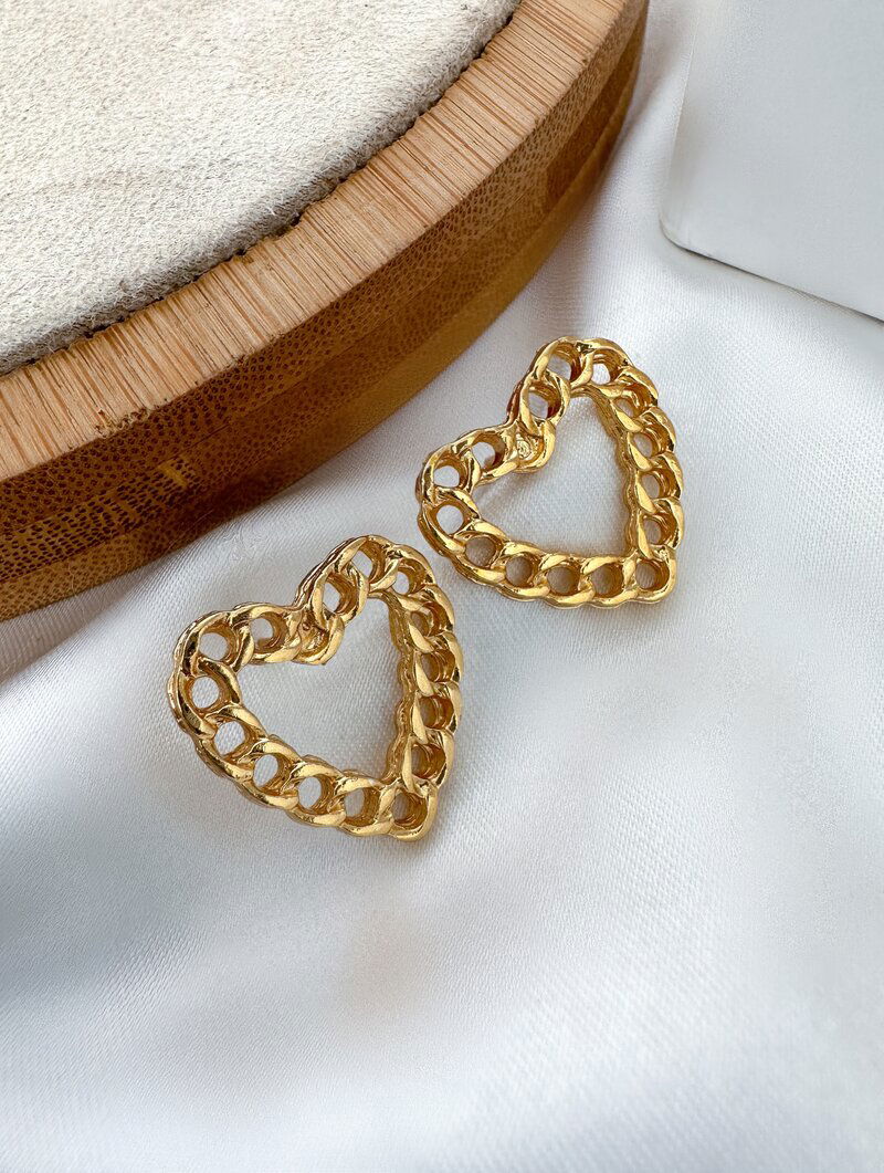 3. Brinco Folheado a Ouro 18k Coração Vazado