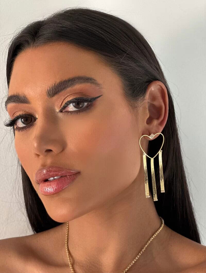 3. Brinco Folheado a Ouro 18k Coração Vazado com Fitas Laminadas e Pontos de Luz
