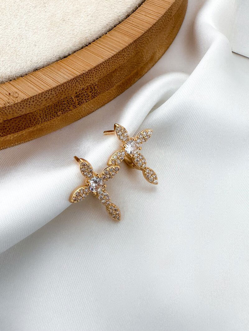 3. Brinco Folheado a Ouro 18k Crucifixo com Micro Zircônia
