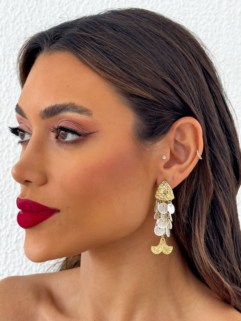 Brinco Folheado a Ouro 18k Deisng Peixei Com Círculos Coloridos