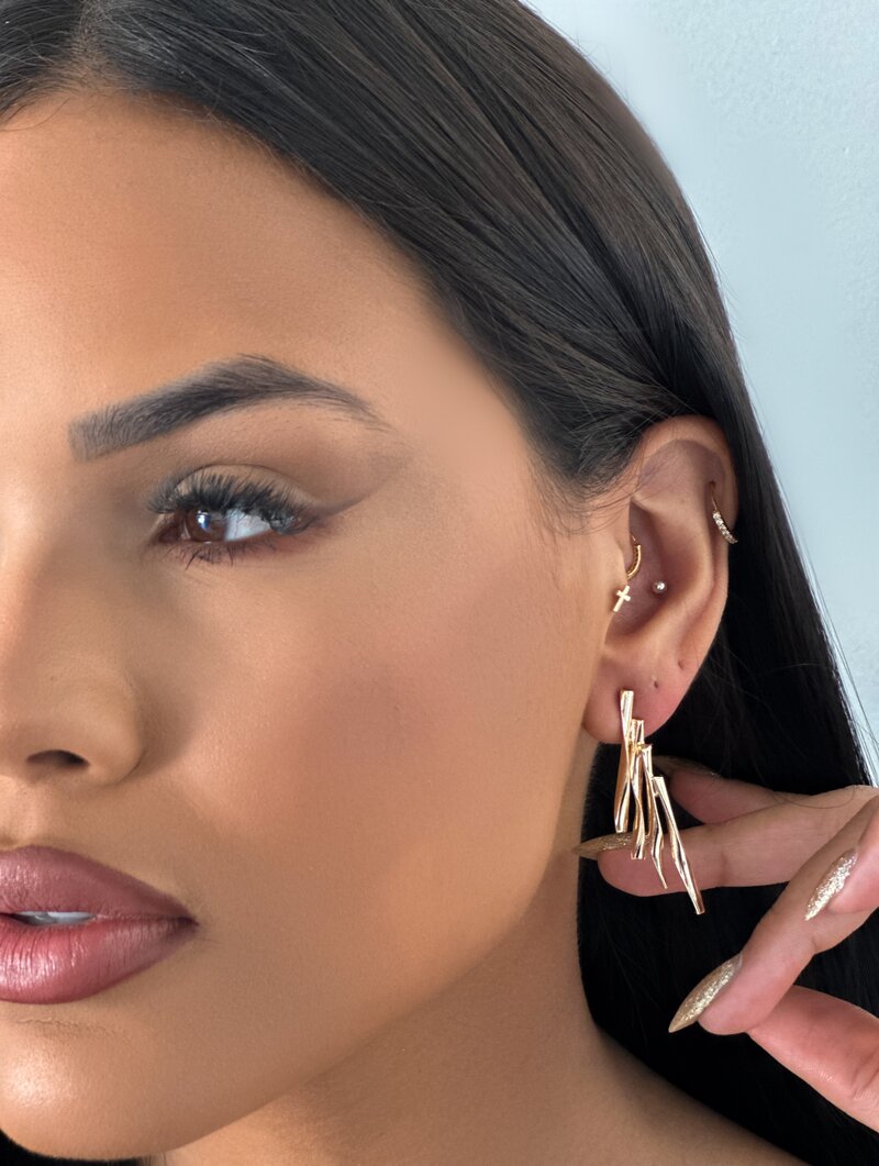 3. Brinco Folheado a Ouro 18K e a Prata Quatro Fios Modernos