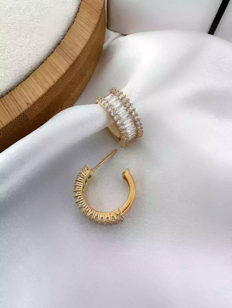 3. brinco folheado a ouro 18k e prata 925 argola com navetes e borda em micro zircônias.