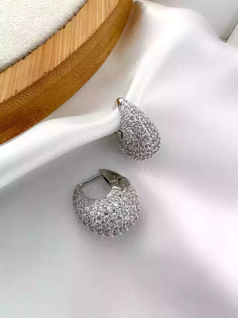2. BRINCO FOLHEADO A OURO 18K E PRATA 925 ARGOLA OVAL CRAVEJADA COM MICRO ZIRCÔNIAS.