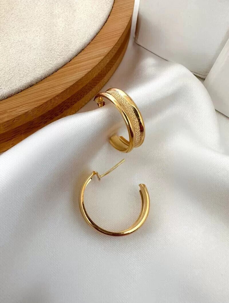 Brinco Folheado a Ouro 18k e Prata 925 Argola Texturizada com Borda Lisa