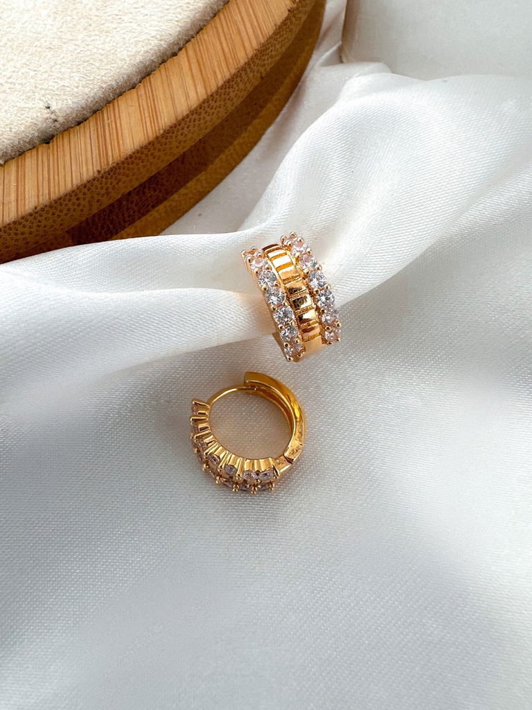 2. BRINCO FOLHEADO A OURO 18K E PRATA 925 ARGOLINHA COM MICRO ZIRCÔNIAS