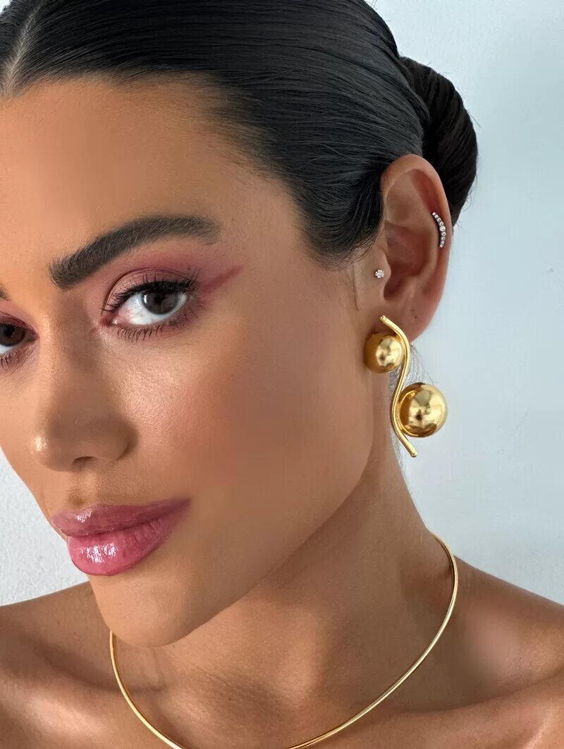 3. Brinco Folheado a Ouro 18k e Prata 925 Aro com Esferas