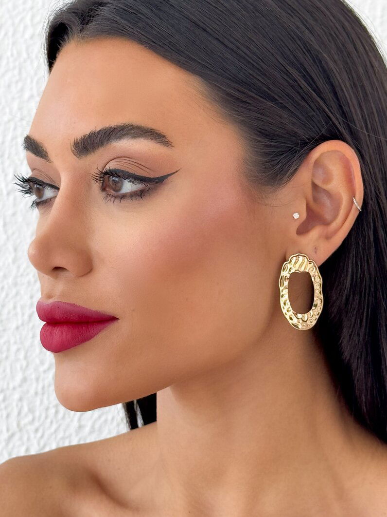 3. Brinco Folheado a Ouro 18K e Prata 925 Formato Oval Martelado