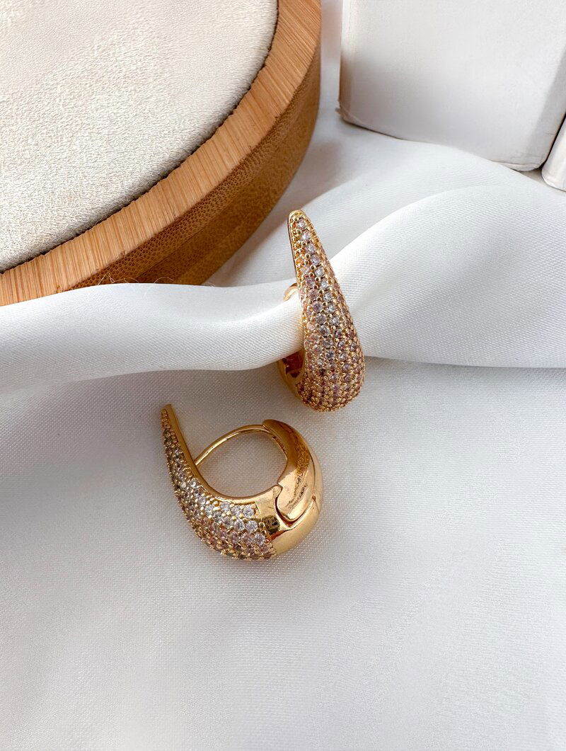 brinco folheado a ouro 18k e prata 925 gota cravejada com fecho