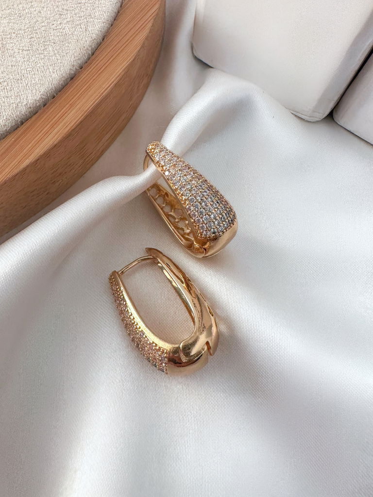 BRINCO FOLHEADO A OURO 18K E PRATA 925 GOTA CRAVEJADA COM MICRO ZIRCÔNIAS