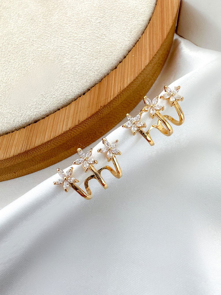 2. BRINCO FOLHEADO A OURO 18K E PRATA 925 TRÊS FLORES COM MICRO ZIRCÔNIA