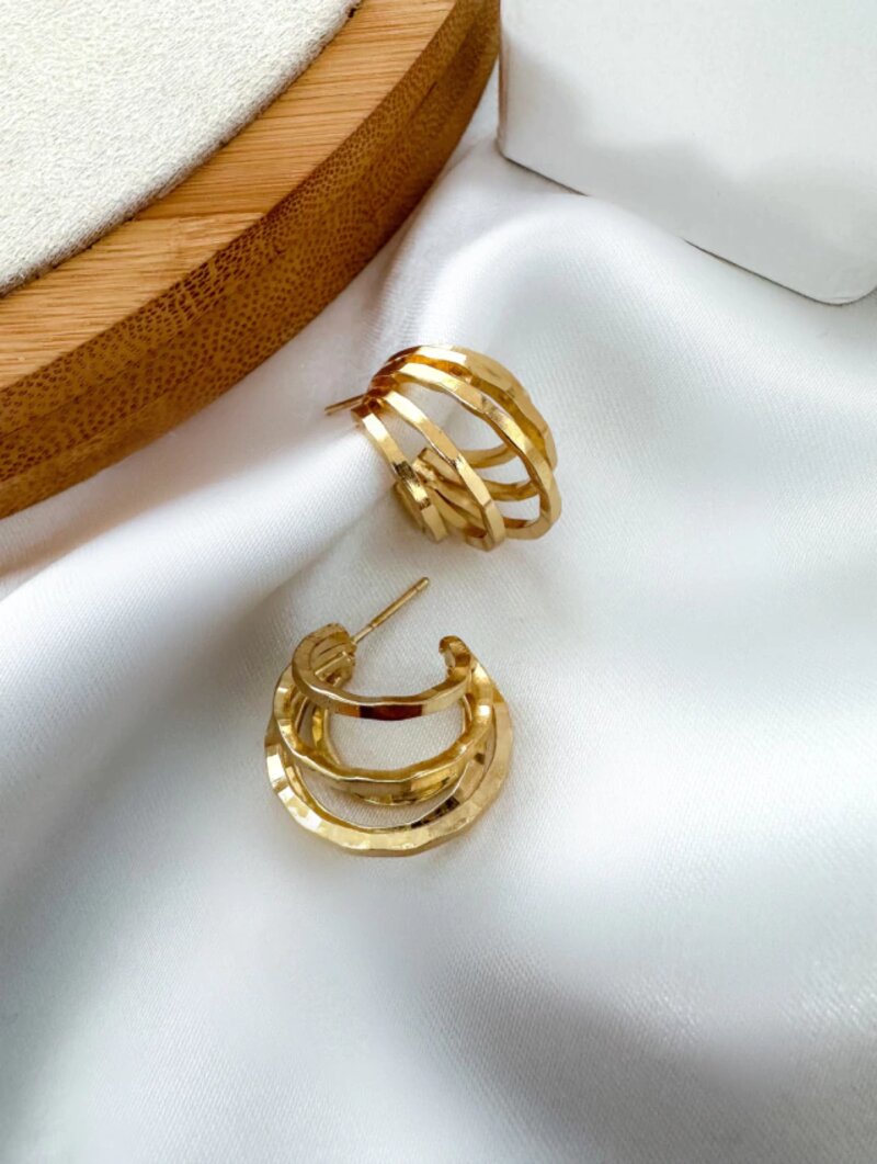 Brinco folheado a ouro 18k e prata argola cinco fios designer geometrico.