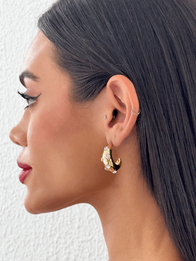 Brinco Folheado a Ouro 18k e Prata Argola Com Ponto de luz