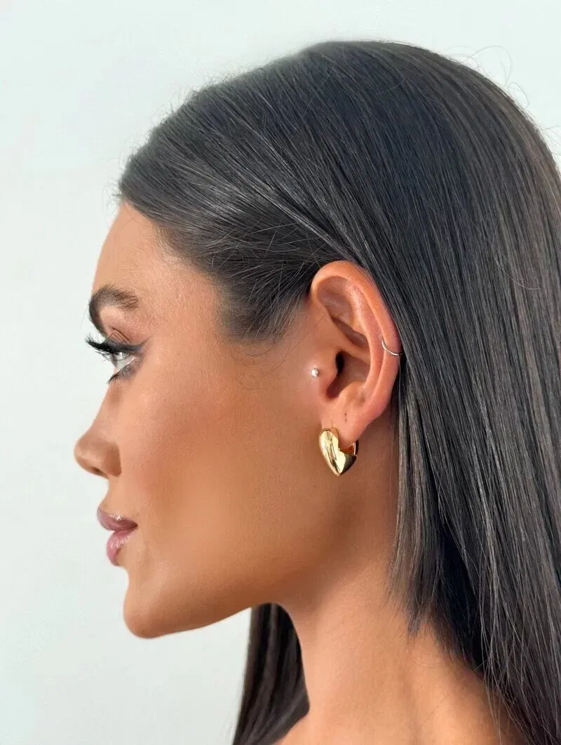 3. Brinco Folheado a Ouro 18k e Prata Argola Coração Liso com Fecho Click
