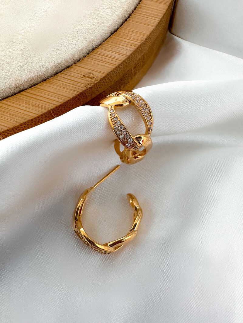 3. Brinco Folheado a Ouro 18K e Prata Argola Corrente com Detalhe Cravejado