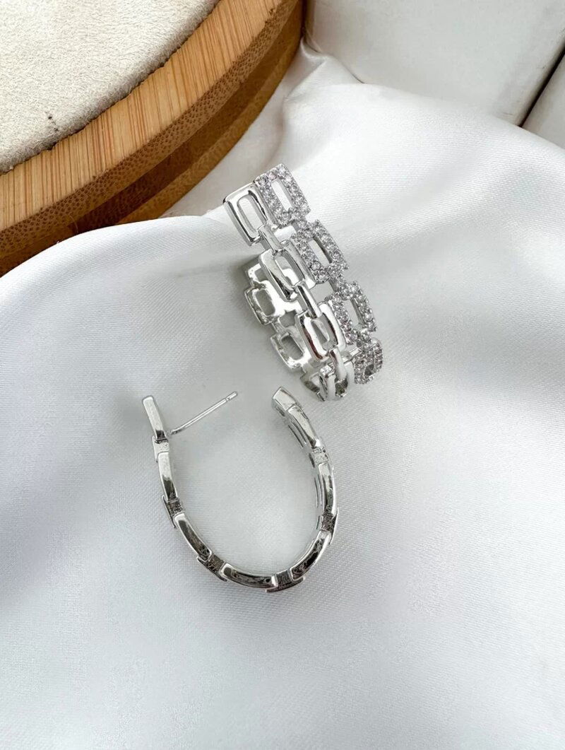 2. Brinco folheado a ouro 18k e prata argola designer correntaria