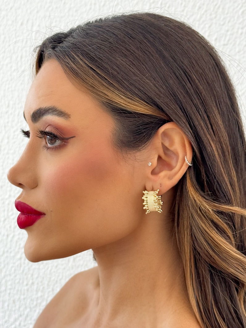 Brinco Folheado a Ouro 18k e Prata Argola Detalhada Com Esferas