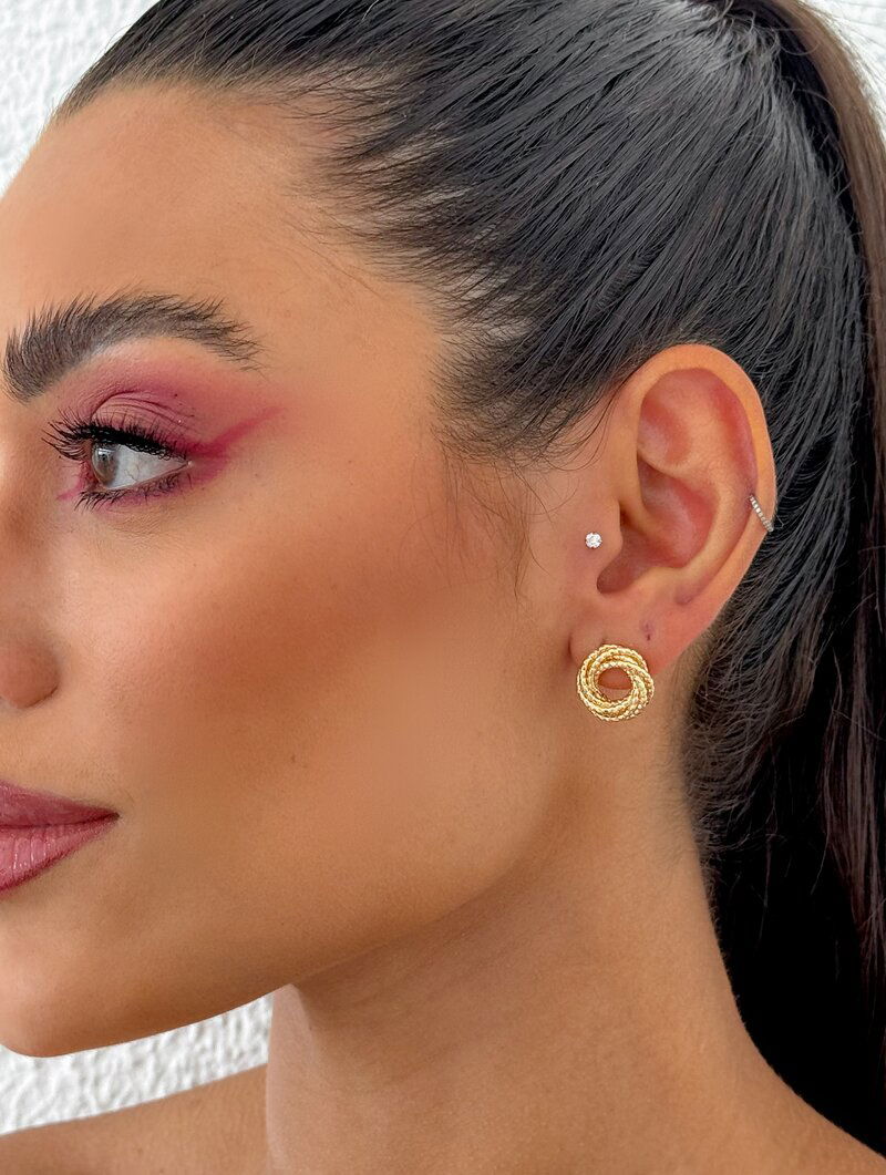 Brinco Folheado a Ouro 18k e Prata Argola Fios Texturizados P
