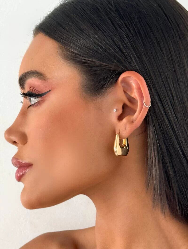 Brinco Folheado a Ouro 18k e Prata Argola Geométrica Fecho Click