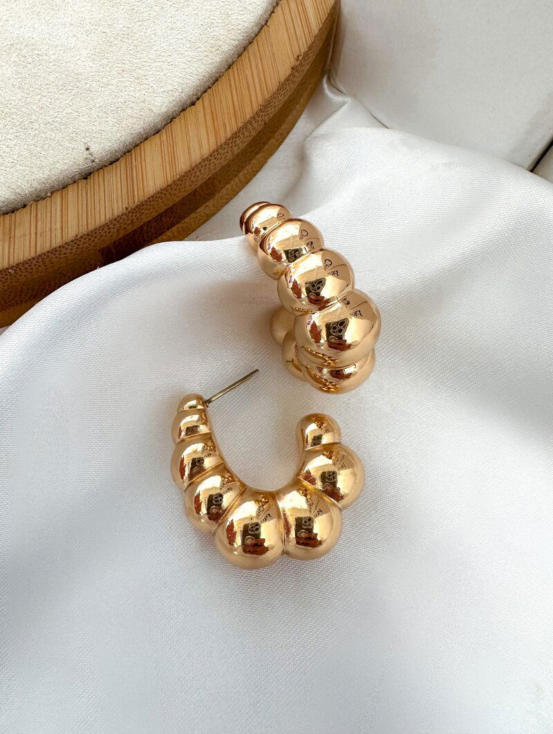 brinco folheado a ouro 18k e prata argola gomos