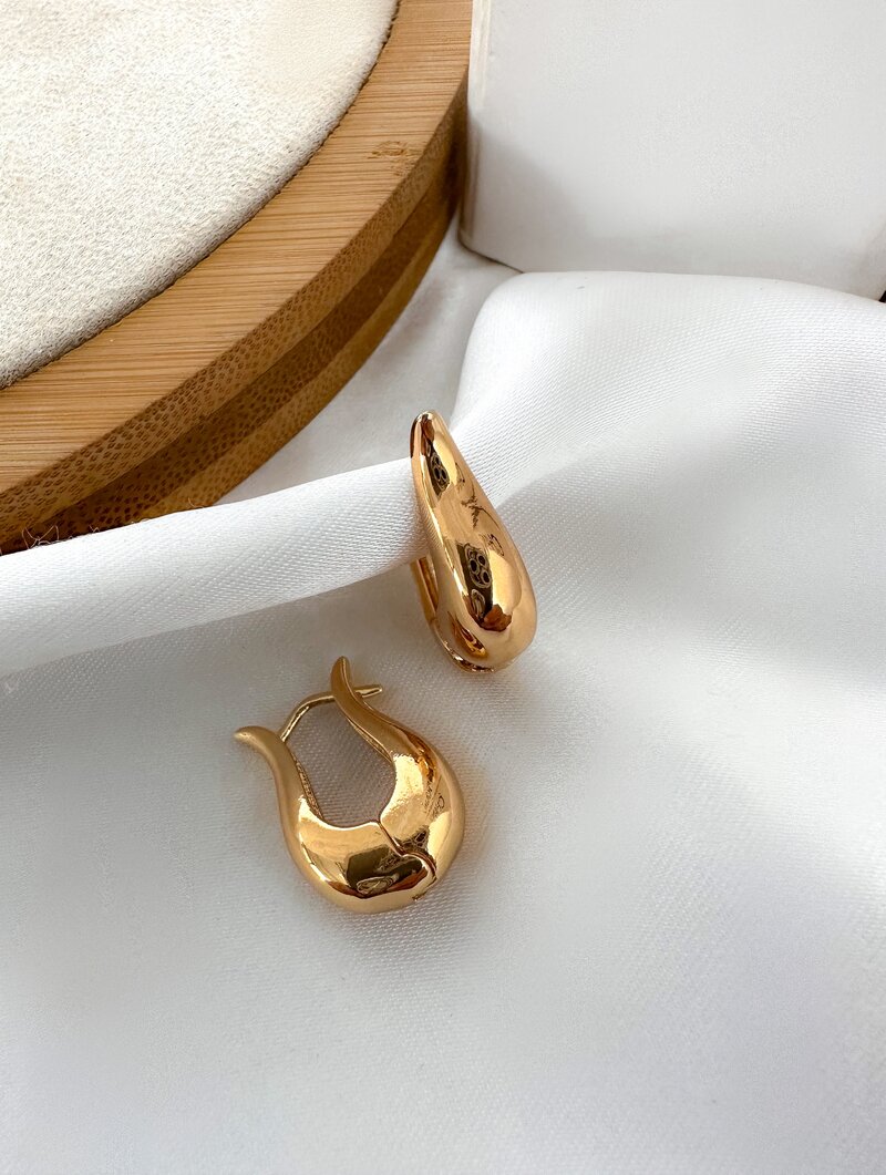 3. Brinco Folheado a Ouro 18k e Prata Argola Gota com Fecho