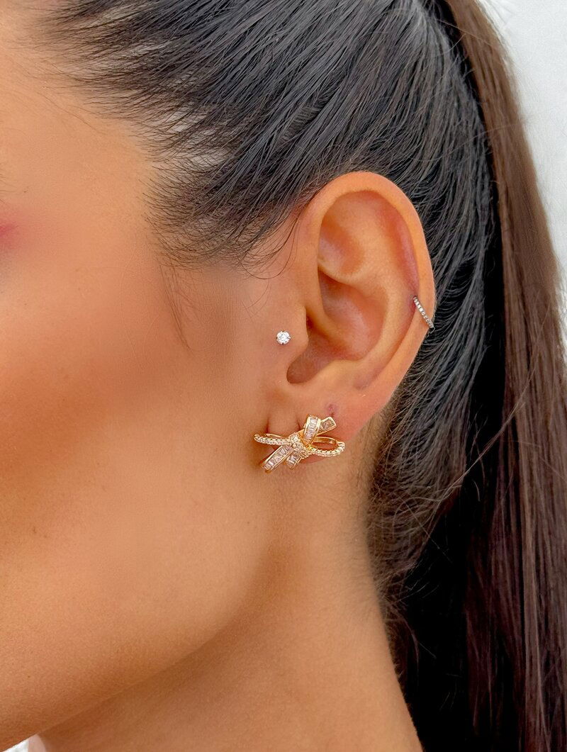 3. Brinco Folheado a Ouro 18k e Prata Argola Laço com Navetes e Micro Zircônias