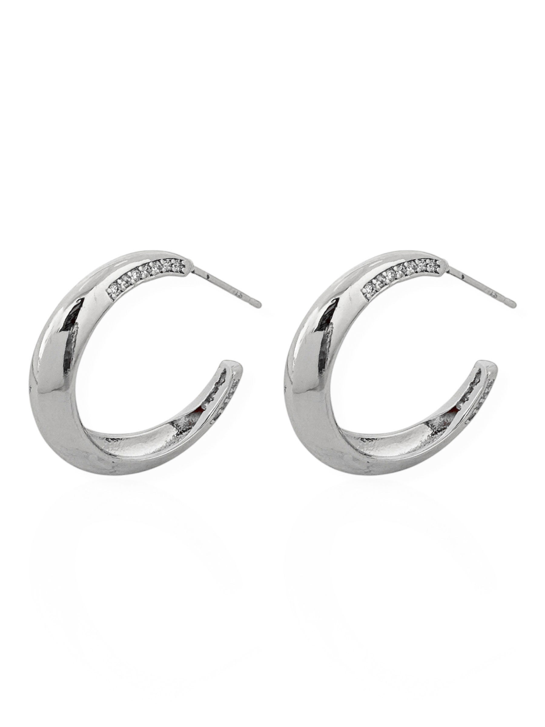 Brinco Folheado a Ouro 18k e Prata Argola Lisa Com Ponta Cravejada