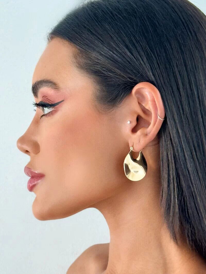 3. Brinco Folheado a Ouro 18k e Prata Argola Martelada Lisa