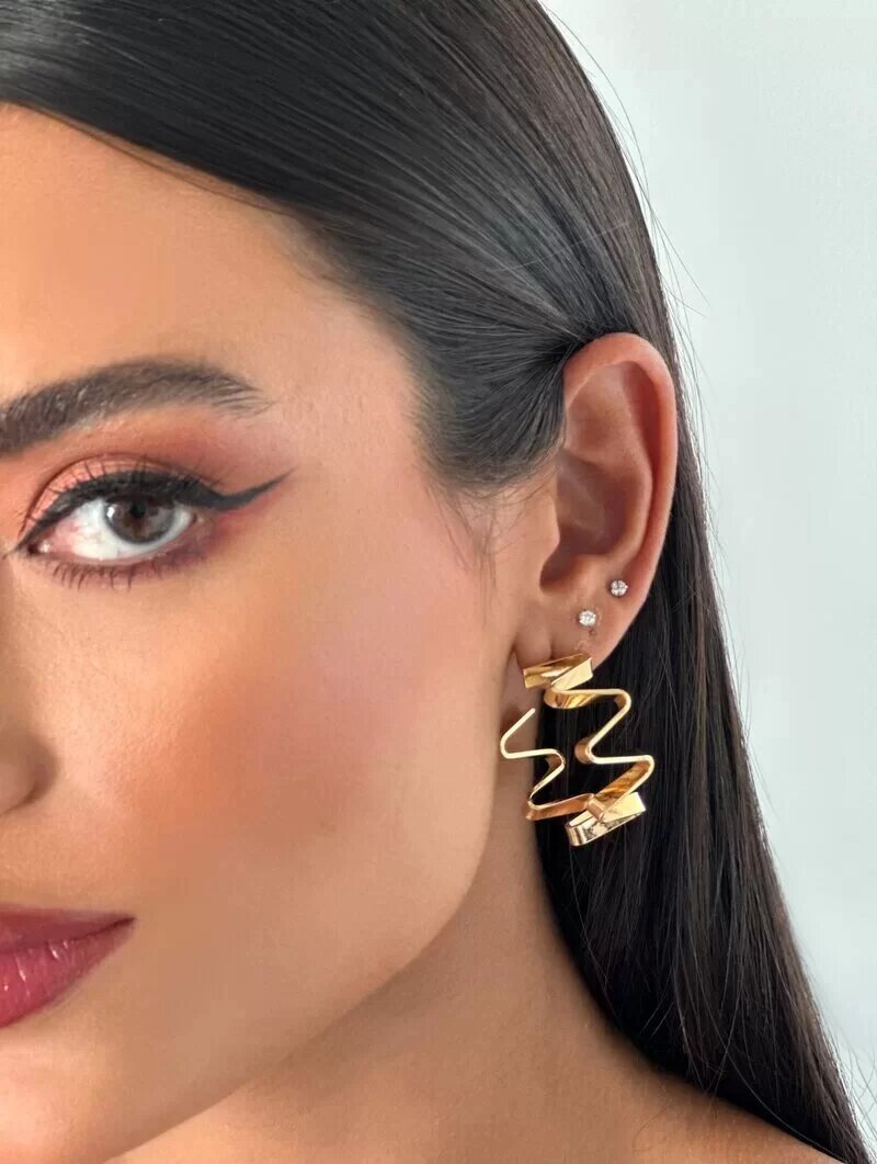 3. Brinco Folheado a Ouro 18k e Prata Argola Ondulada Lisa