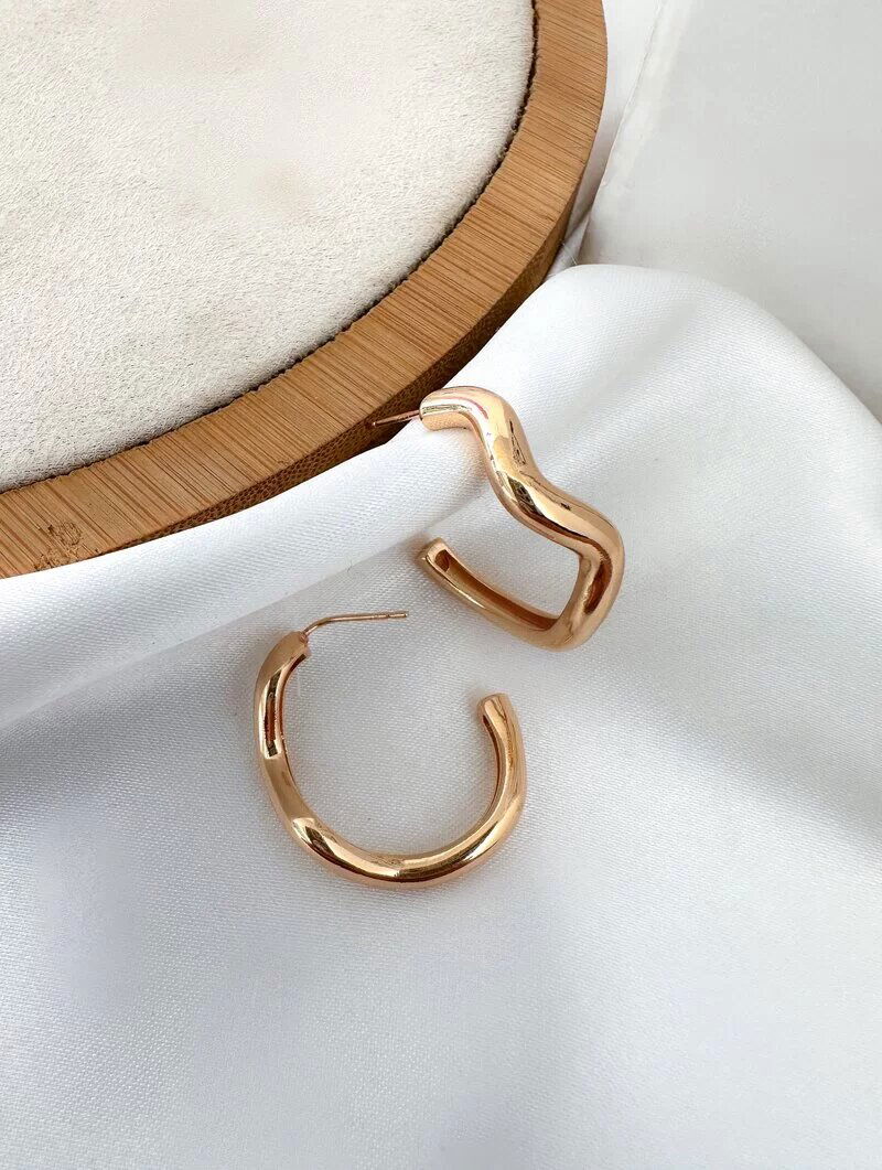 3. Brinco Folheado a Ouro 18k e Prata Argola Ondulada Lisa
