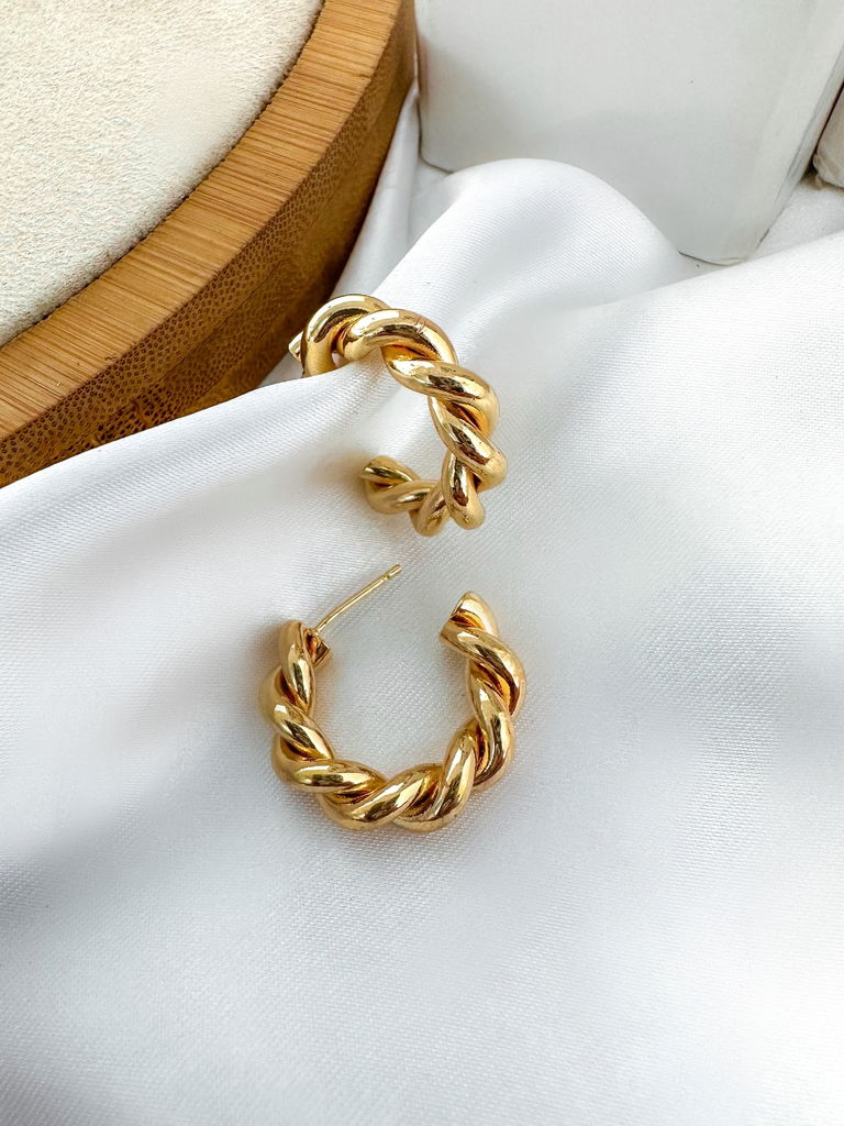 brinco folheado a ouro 18k e prata argola torcida