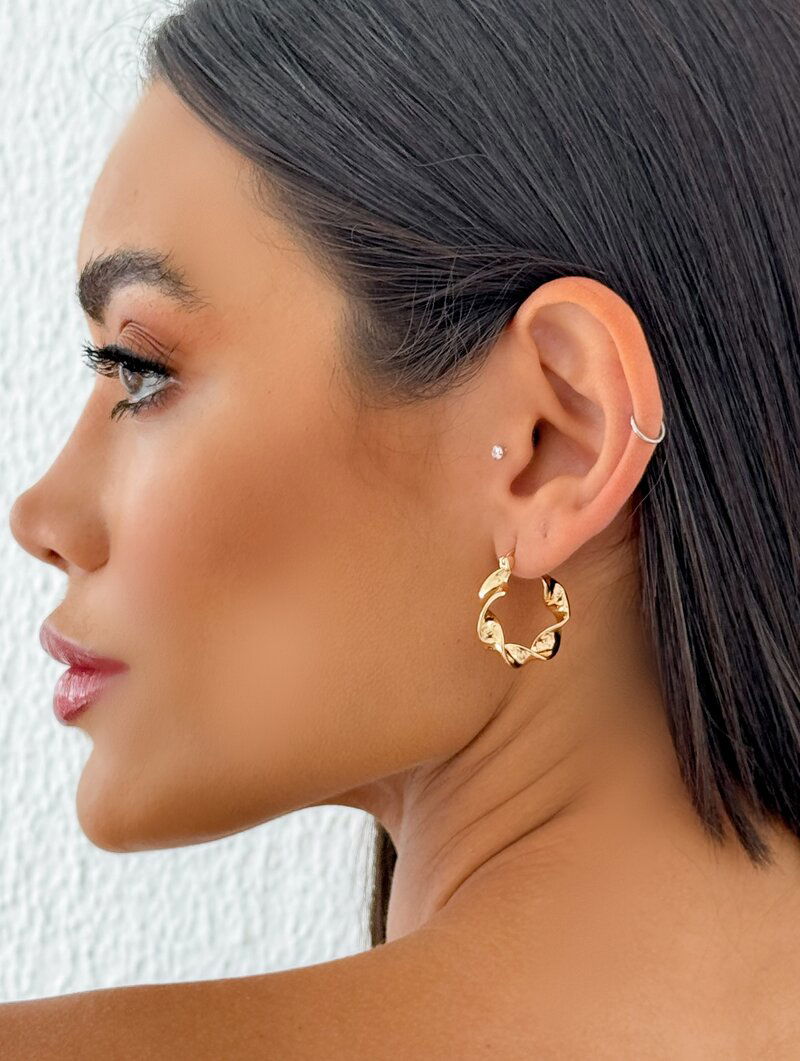 3. Brinco Folheado a Ouro 18k e Prata Argola Torcida com Fecho