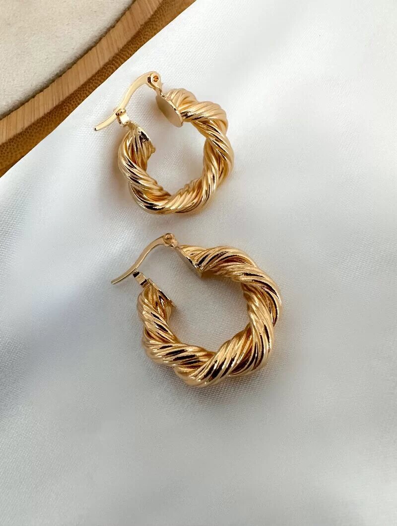 3. Brinco Folheado a Ouro 18k e Prata Argola Trançada com Fecho