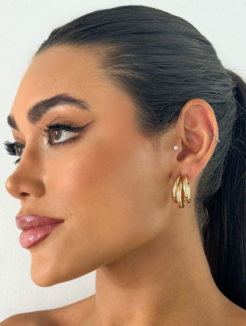 3. Brinco Folheado a Ouro 18k e Prata Argola Três Fios G