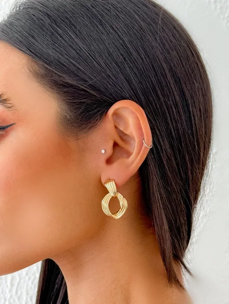 Brinco Folheado a Ouro 18k e Prata Argola Três Fios Martelados com Ponteira