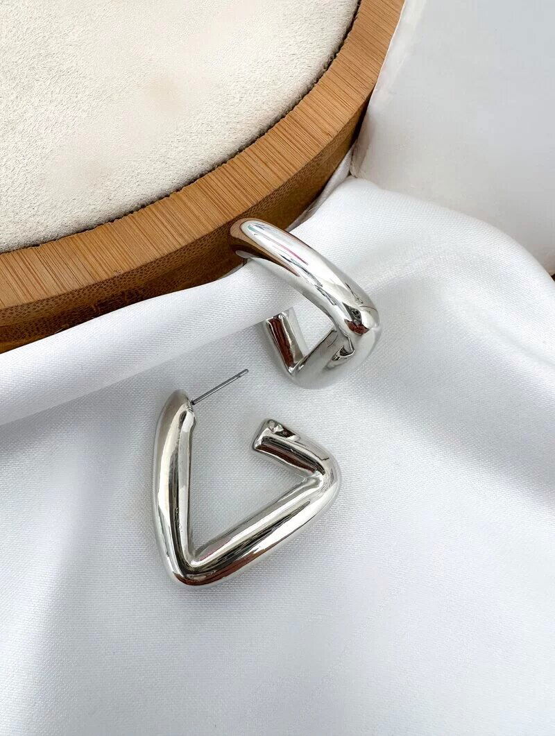 Brinco Folheado a Ouro 18k e Prata Argola Triangulo Tubo