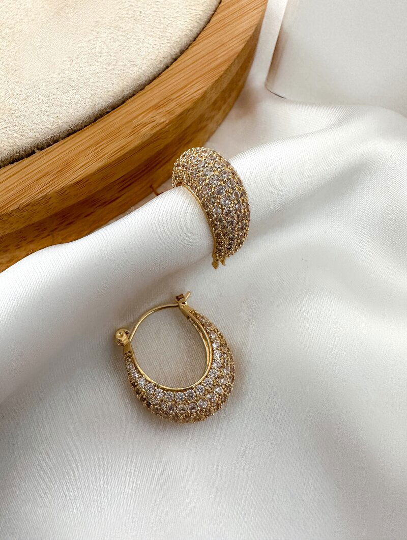 3. Brinco Folheado a Ouro 18k e Prata Argolinha com Fecho Cravejada