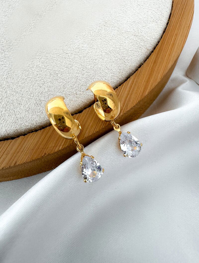 3. Brinco Folheado a Ouro 18k e Prata Argolinha com Gota de Zircônia