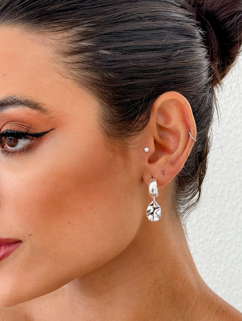 3. Brinco Folheado a Ouro 18k e Prata Argolinha com Gota Martelada