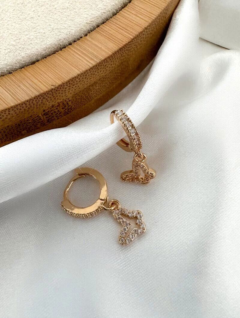 Brinco Folheado a Ouro 18k e Prata Argolinha Cravejada com Borboleta Vazada