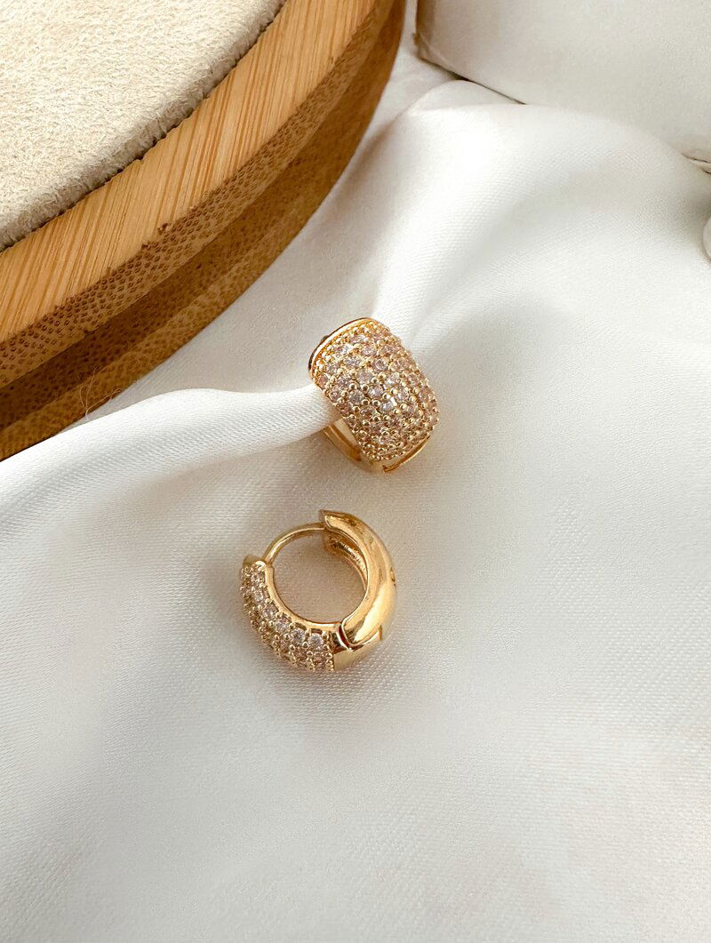 3. brinco folheado a ouro 18k e prata argolinha cravejada com fecho
