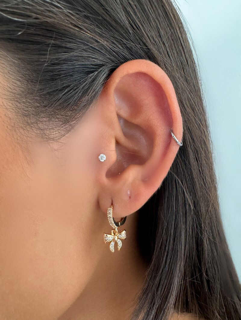 3. Brinco Folheado a Ouro 18k e Prata Argolinha Cravejada com Laço