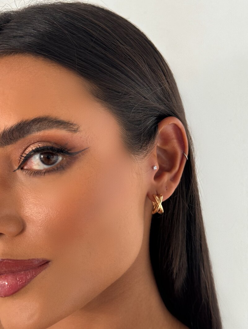 3. Brinco Folheado a Ouro 18k e Prata Argolinha em X com Fecho