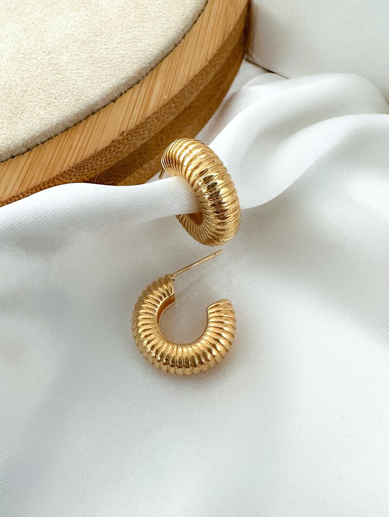 brinco folheado a ouro 18k e prata argolinha texturizada