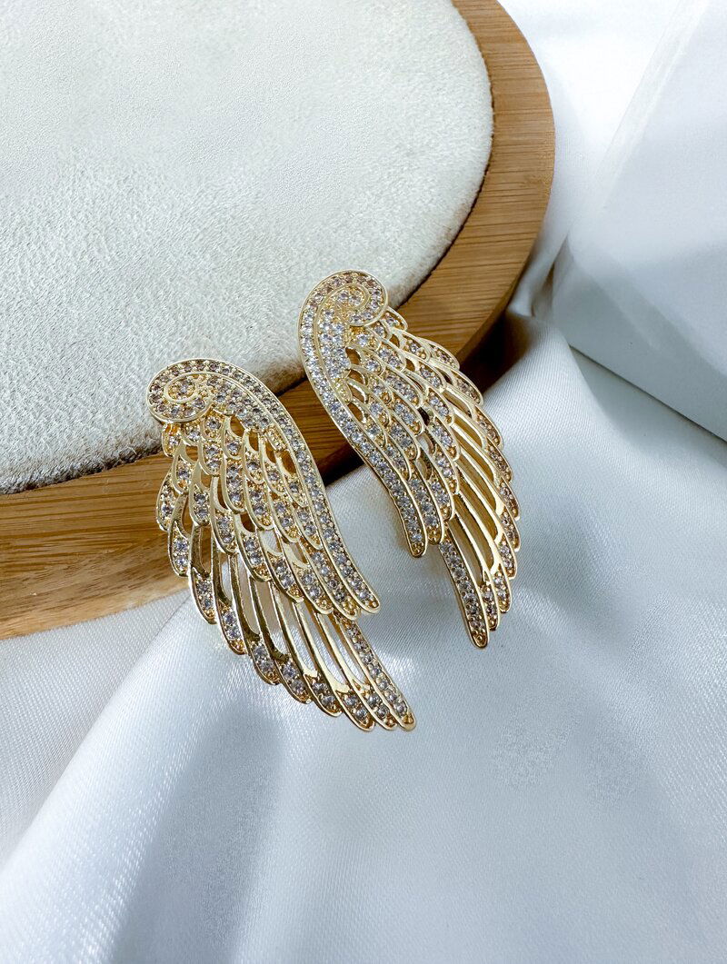 3. Brinco Folheado a Ouro 18k e Prata Asas Cravejadas