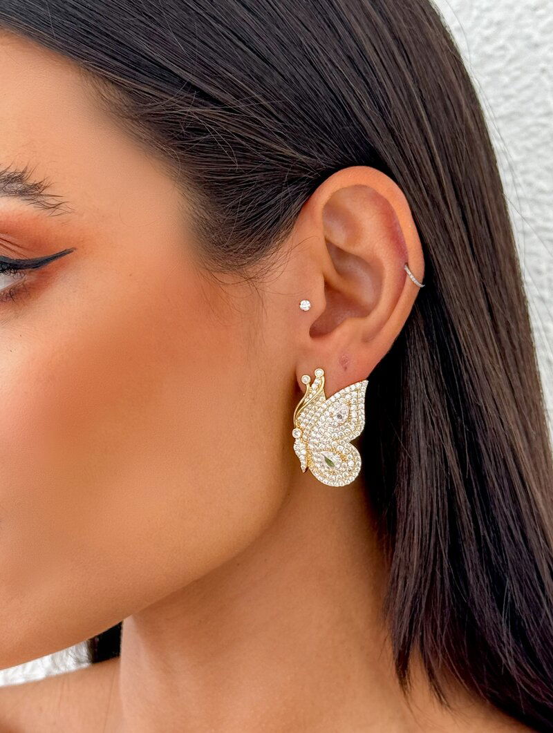 Brinco Folheado a Ouro 18k e Prata Borboleta Cravejada com Micro Zircônias