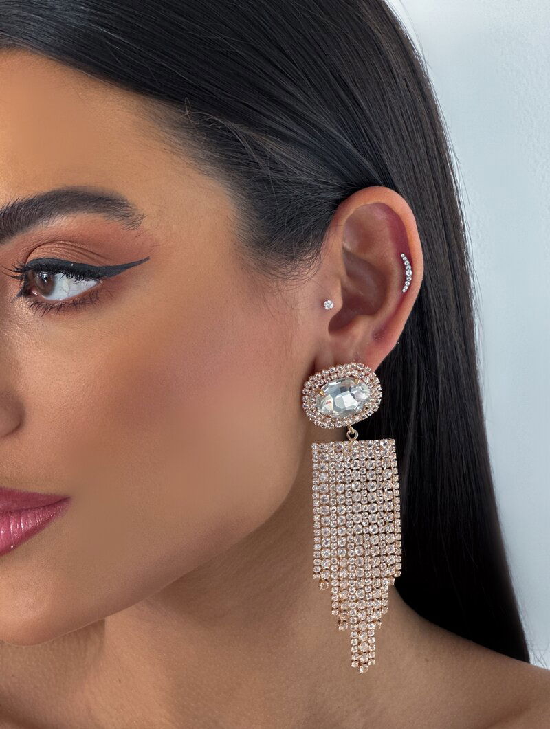3. Brinco Folheado a Ouro 18k e Prata Botton de Zircônia com Franja