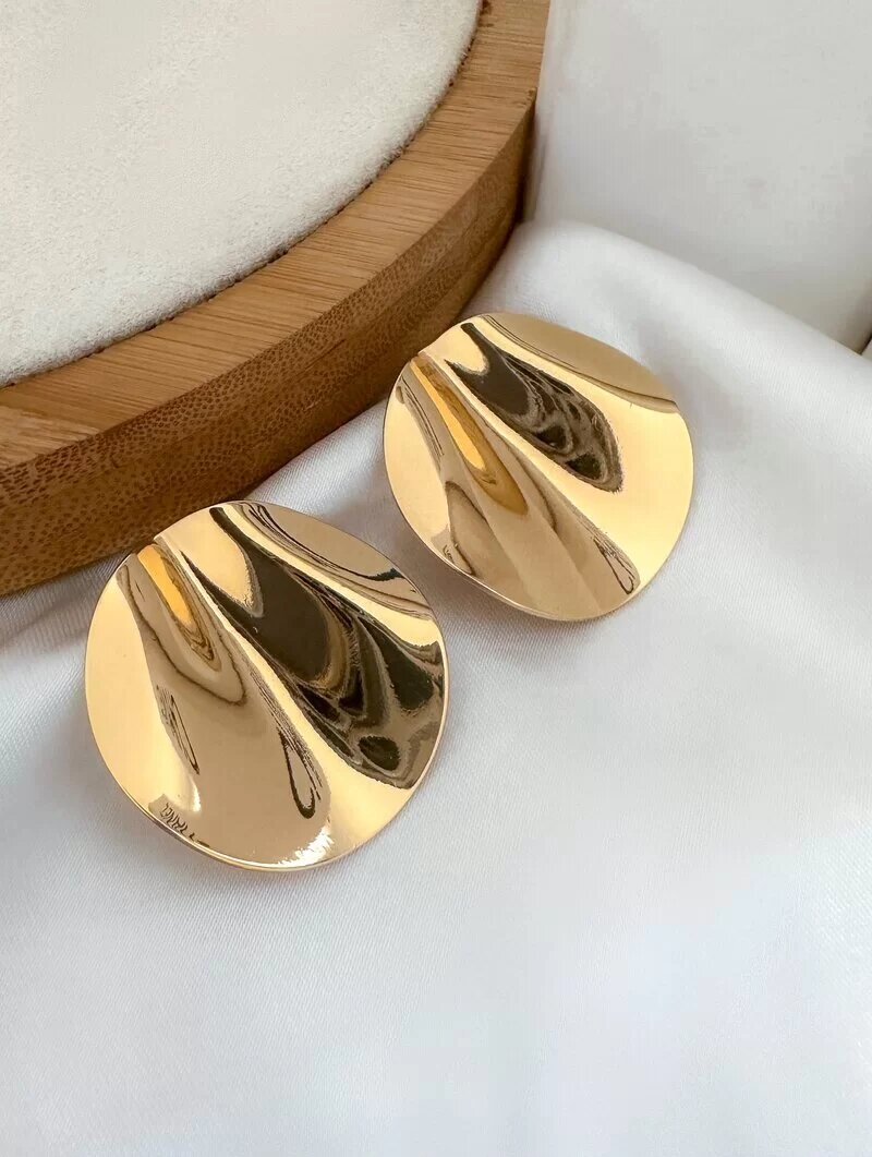 Brinco Folheado a Ouro 18k e Prata Botton Liso Martelado
