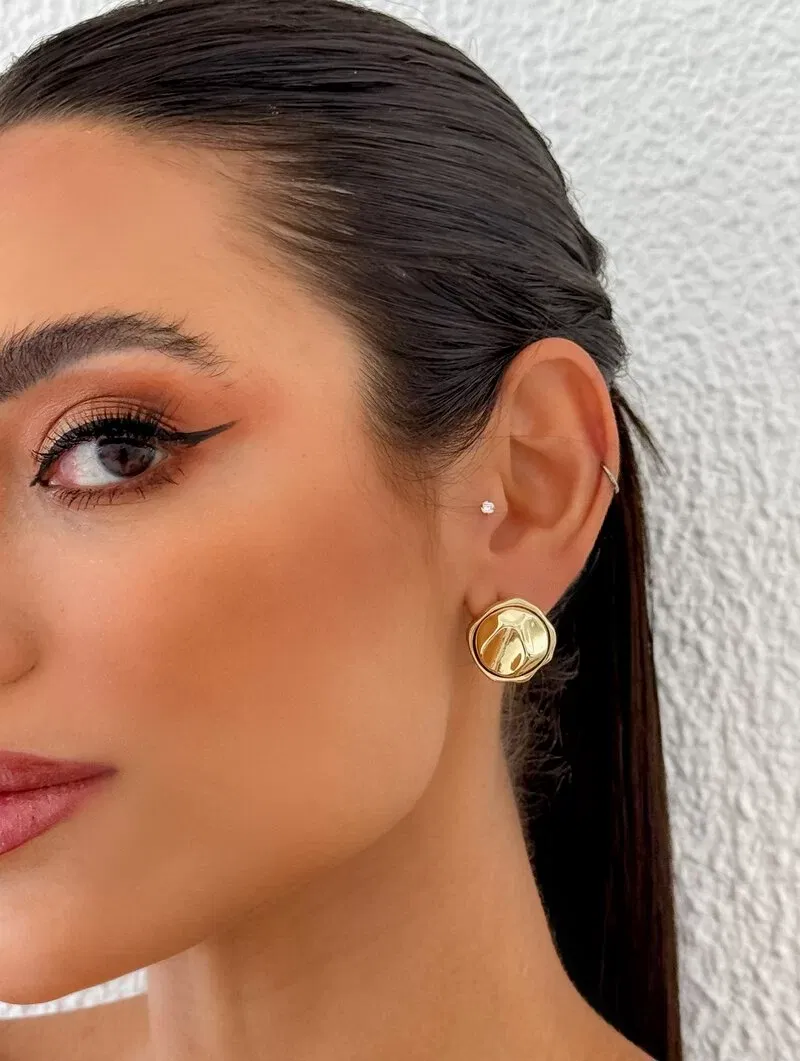 3. Brinco Folheado a Ouro 18k e Prata Botton Martelado com Borda