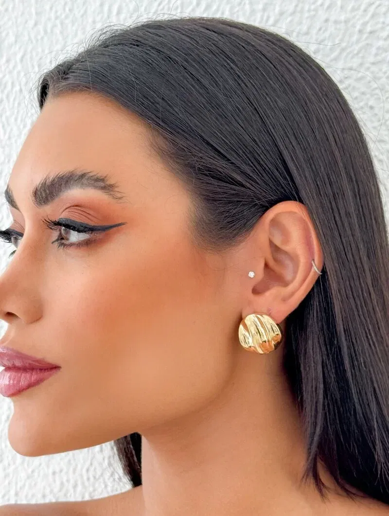 3. Brinco Folheado a Ouro 18k e Prata Botton Ondulado